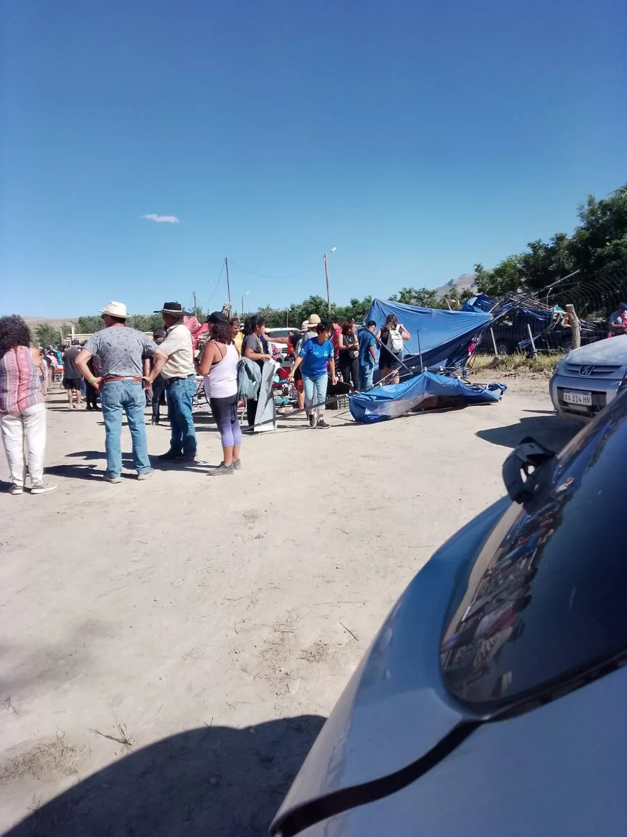 Chos Malal..-Un viento fuerte azoló la localidad de Taquimilan hace instantes. Hubo destrozos y personas heridas en el 9 Encuentro del Cantor y la Mujer Campesina.