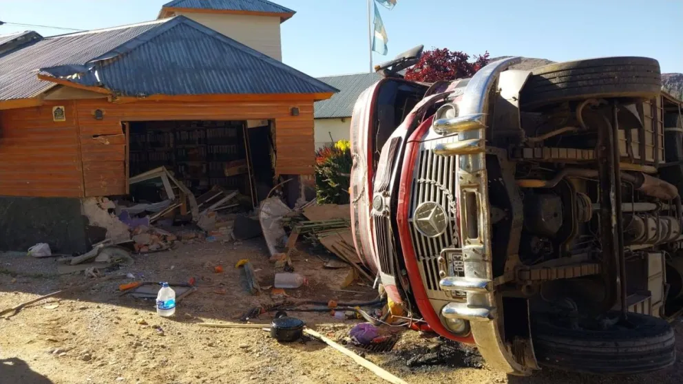 Accidente en el Norte Neuquino Un colectivo volcó y chocó contra el edificio municipal de Huinganco: dos heridos leves