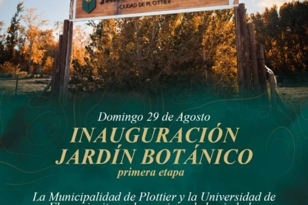 Plottier.- El próximo 29 de agosto a las 16hs se llevará adelante la inauguración de la primera etapa del Jardín Botánico Ciudad de Plottier. El acto, contará con la presencia de Gloria Ruiz, Intendenta de la ciudad de Plottier, Christian Kreber, Vicerrector de UFLO, representantes del Centro Pyme-Adeneu, funcionarios municipales y vecinos que se acerquen a participar. A las 15hs, se realizará una plantación de especies nativas, con grupos especialmente invitados.