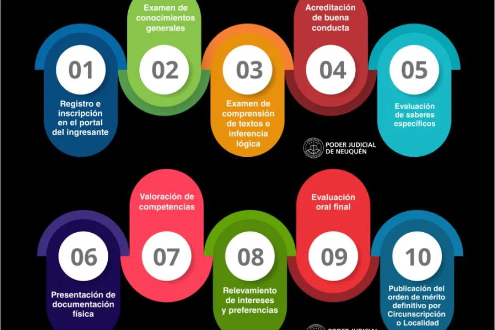 El proceso de selección abarca diversas etapas de evaluación. Quienes superen estas instancias integrarán un orden de mérito y podrán ser convocados para ingresar al Poder Judicial una vez que se generen vacantes.