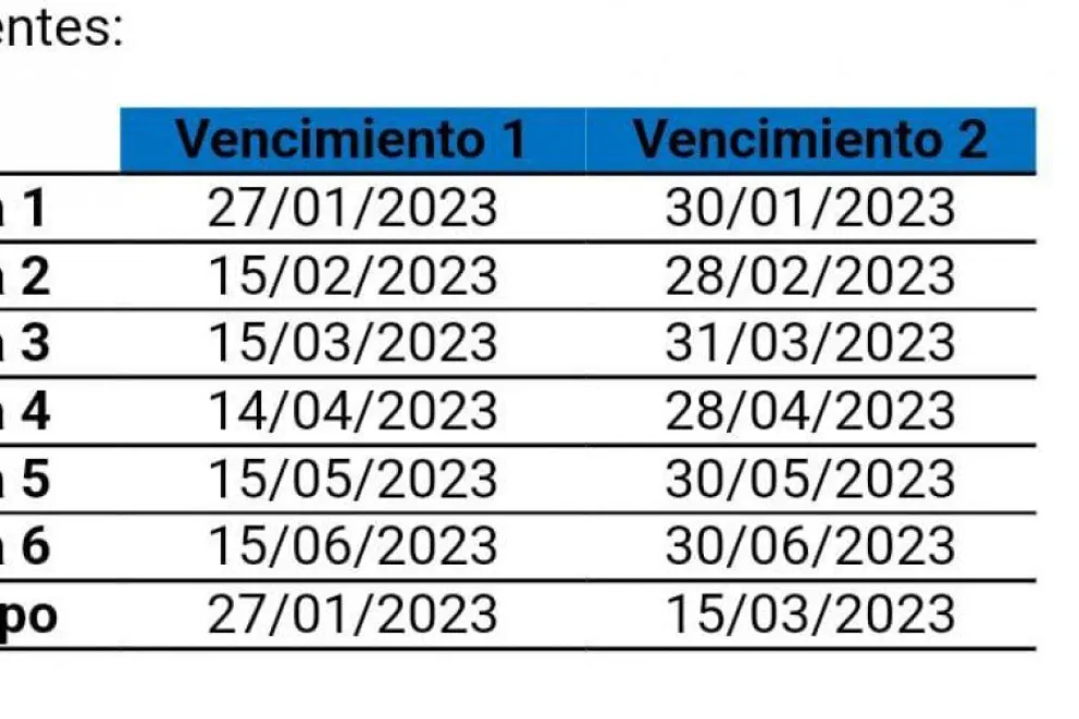 Los vencimientos de las cuotas del Primer Semestre 2023 son los siguientes:
