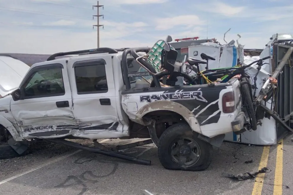 Una colisión se produjo en la mañana de este lunes, en el km 1323 de la Ruta 237 km. Un vehículo colisionó contra una camioneta Ranger que iba con un motorhome y cargado en la cúpula.