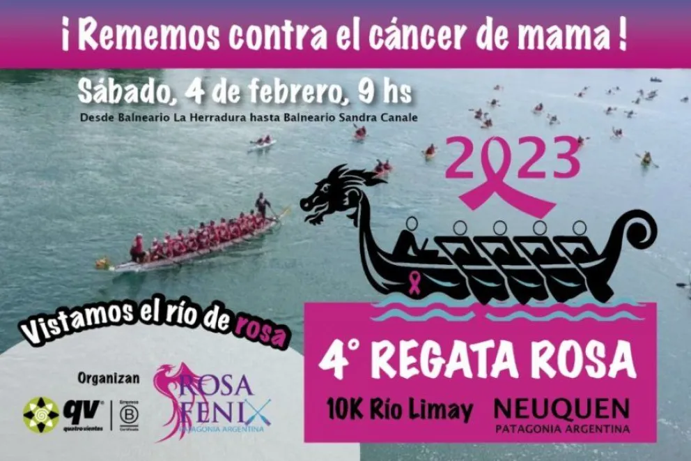 La regata Rosa se realizará el día 4 de febrero a las 9 horas en el Río Limay para promocionar el canotaje recreativo en el marco de la campaña contra el Cáncer de mamas promovida por el grupo, Rosa Fénix.