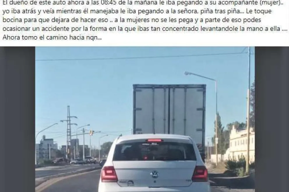 "Le toqué bocina para que dejara de hacer eso .. a la mujeres no se les pega y aparte de eso podes ocasionar un accidente por la forma en la que ibas tan concentrado levantándole la mano a ella .... Ahora tomo el camino hacia nqn...", publicó y rápidamente recibió cientos de comentarios. Muchos le agradecieron por involucrarse.