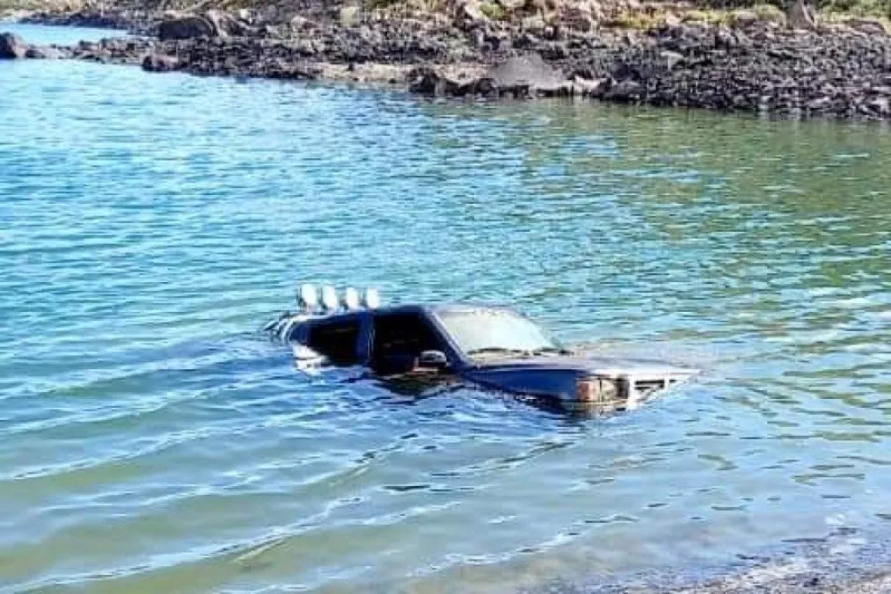 Hoy lograron sacar la camioneta que cayó a la Laguna Escondida el sábado por la tarde. Al propietario se le labró una infracción.