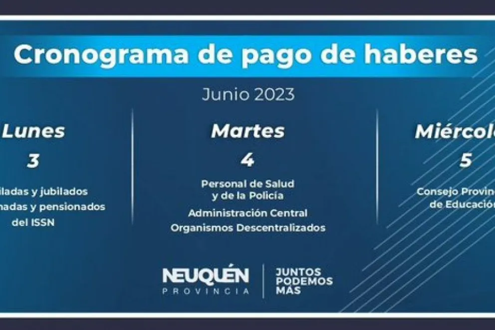 Neuquén.- El lunes 3 de julio comienza el cronograma de pago de haberes a la administración pública provincial.