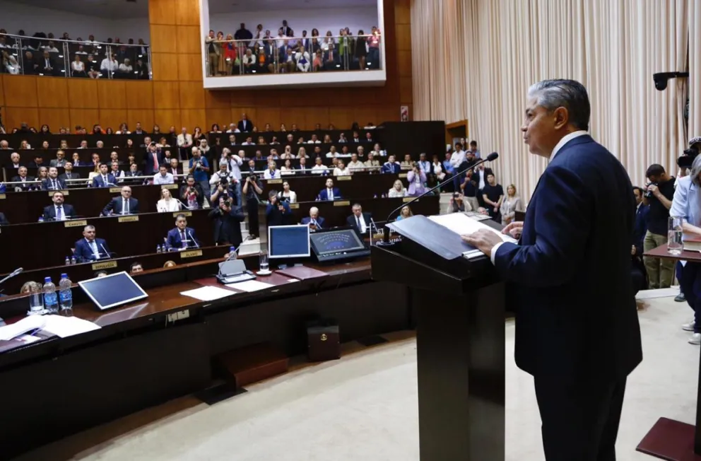 En su discurso, el Gobernador Rolando Figueroa dio a conocer que se "vamos a eliminar el régimen de jubilaciones de privilegios y vamos a disminuir un 50 por ciento los cargos políticos".