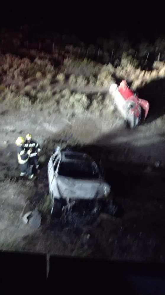 Los autos involucrados fueron un BMW, que quedó consumido por el fuego, un Fiat Mobi y un Renault Fluence, que volcaron y quedaron sobre la banquina.