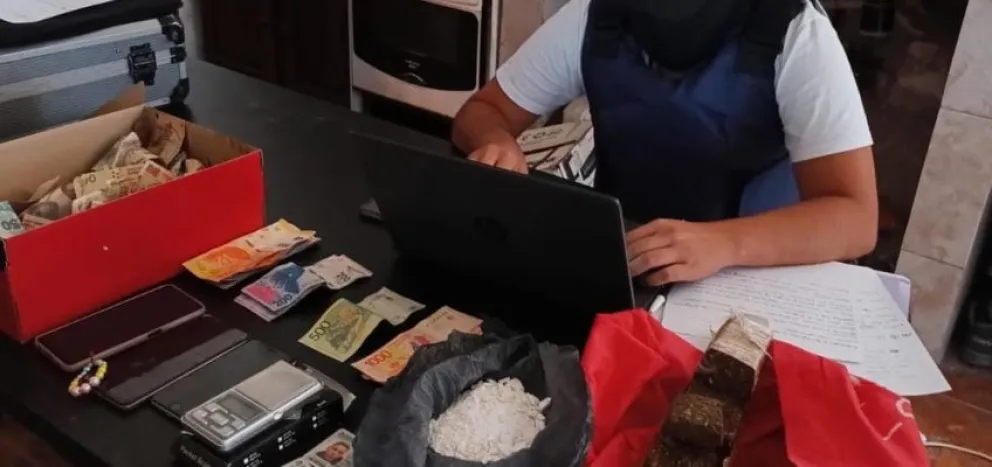 Como resultado, se secuestró más de 1 millón de pesos en efectivo, 33 mil dólares y 370 euros. También, se incautaron más de 100 plantas de marihuana, hojas en proceso de secado, Clorhidrato de Cocaína, marihuana, teléfonos celulares, computadoras y pen drives, entre otros elementos.