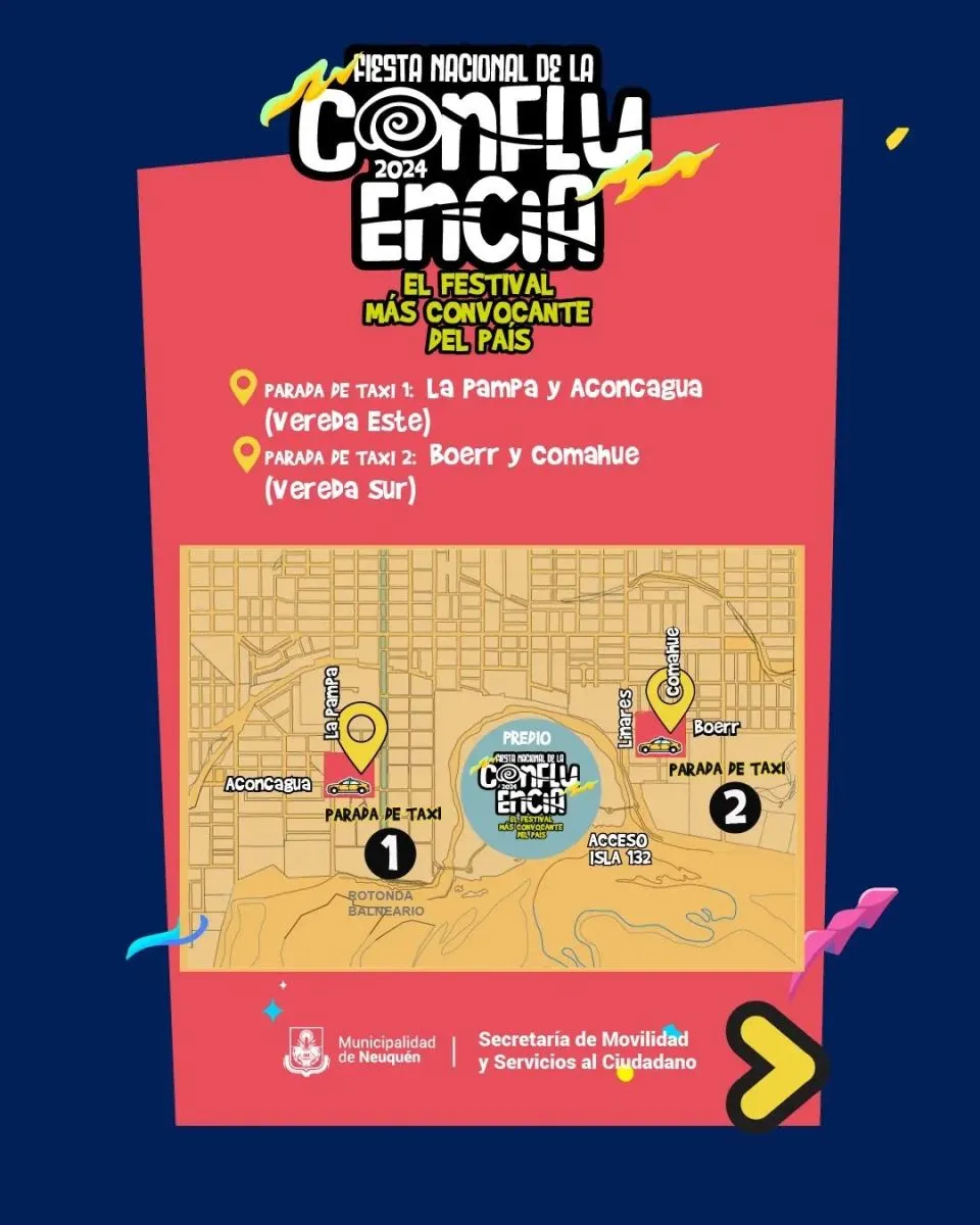 Neuquén.- La Municipalidad de Neuquén anunció que habrá paradas de taxis en las inmediaciones del predio de la Fiesta Nacional de la Confluencia.