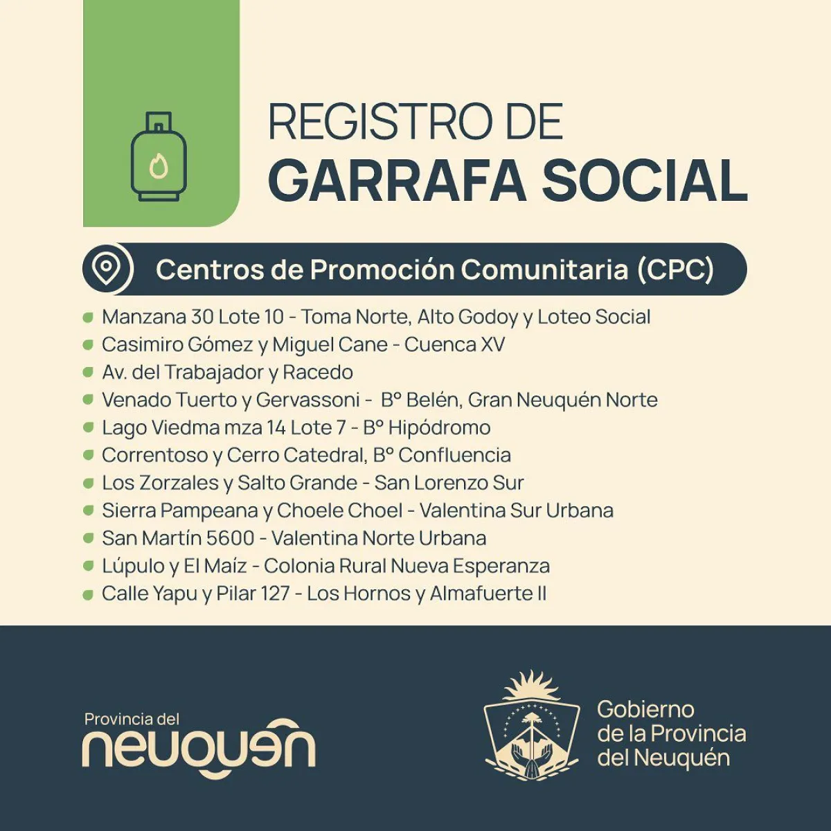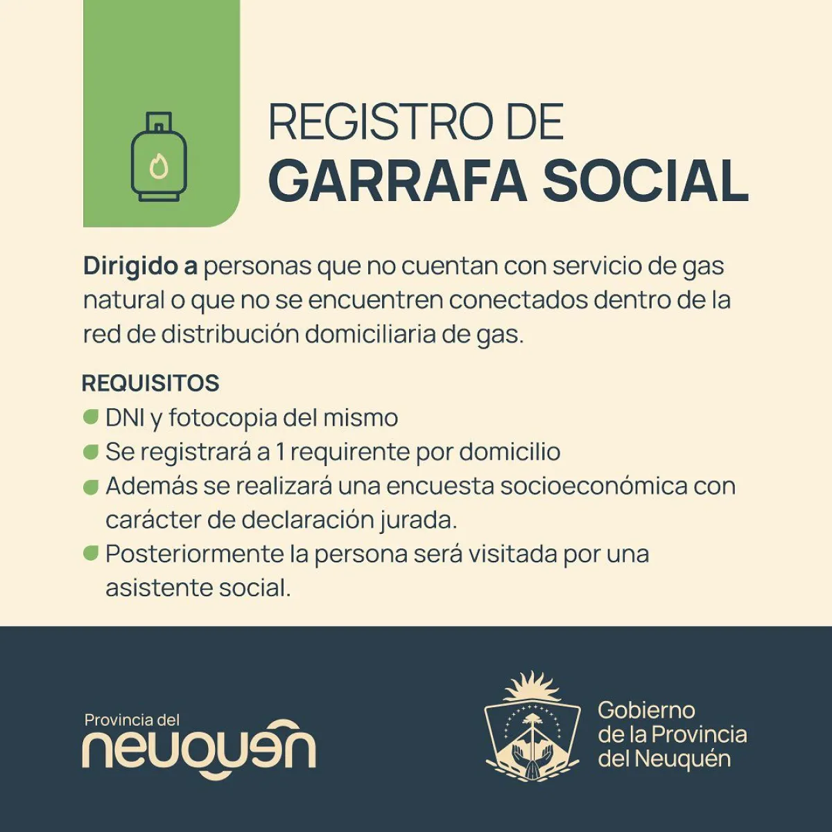 Este reempadronamiento, está dirigido a personas con domicilio en Neuquén capital que no cuentan con servicio de gas natural o que no se encuentren conectados a la red de distribución domiciliaria de gas.