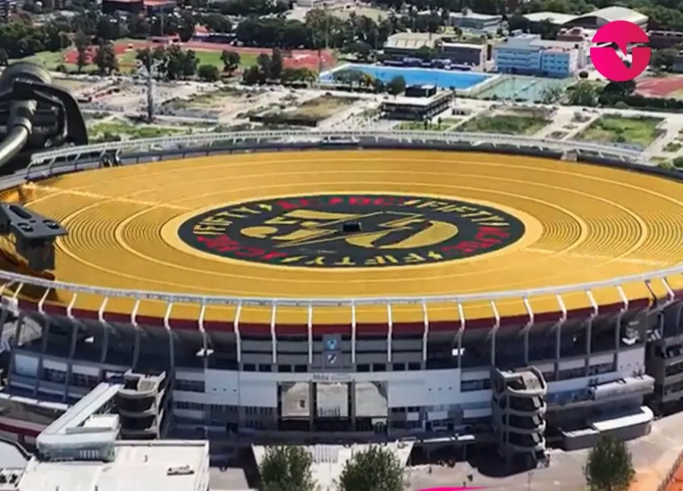 - El video mostraba un disco de vinilo girando sobre una imagen del Estadio Monumental.