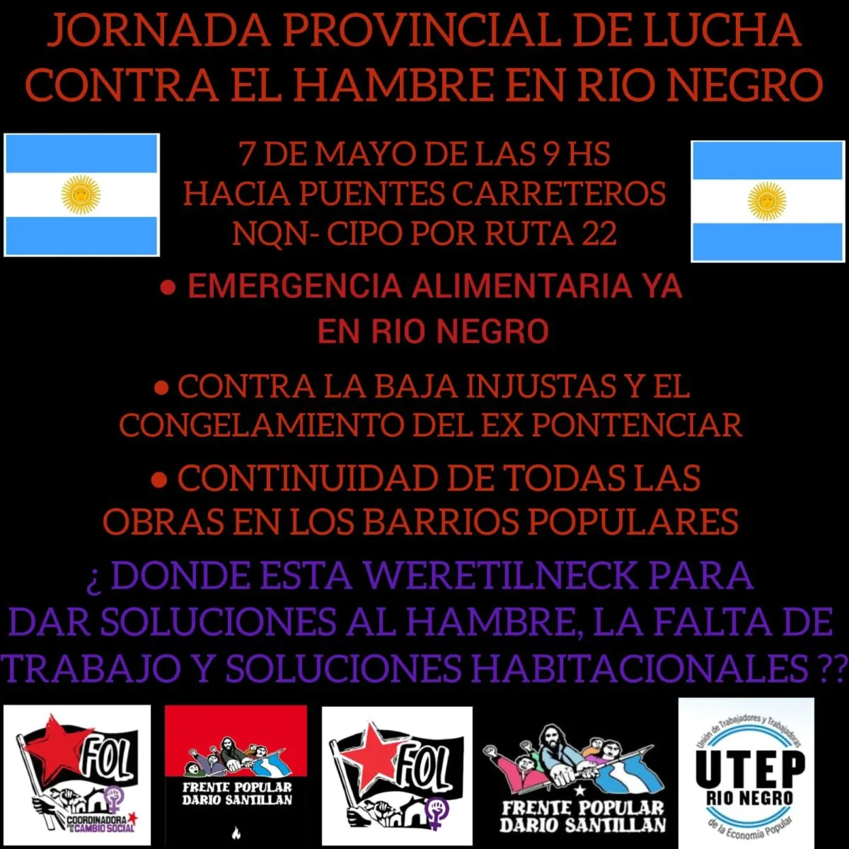 Mientras que organizaciones del lado rionegrino llevaron la jornada de protesta hacia la zona de los puentes carreteros. El corte fue en el sector de El Fortín, en la mano Cipolletti-Neuquen: Pasadas las 14 el tránsito quedó liberado y se normalizó la circulación.