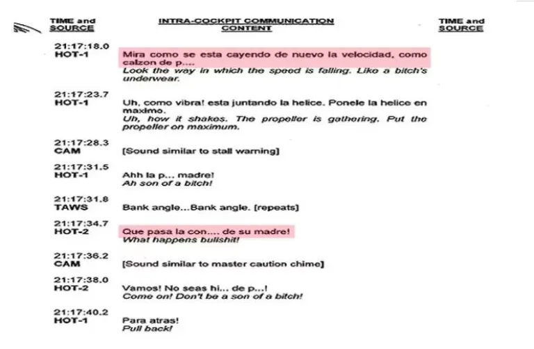 Parte de la desgrabación de la última conversación que mantuvieron el piloto y el copiloto antes de estrellarse