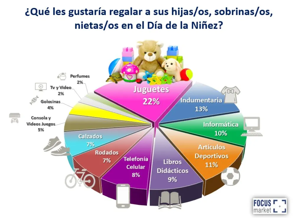 Desde Focus Market realizaron un informe en base a un relevamiento sobre la base de 2.976 casos de diferentes grupos etáreos, en todo el país. Le preguntaron a la gente que le van a regalar a los más chiquitos y donde van a comprar.