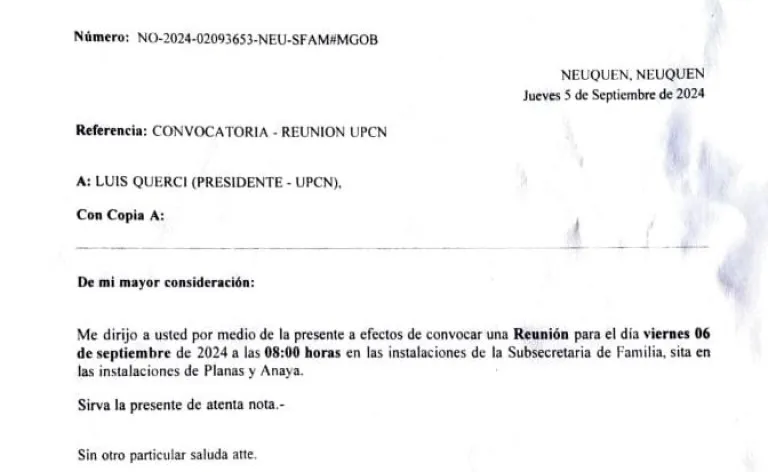 Neuquén.- Luego de la medida de fuerza realizada este jueves en el Ministerio de Desarrollo Social, el ejecutivo provincial convocó al gremio Unión del Personal Civil de la Nación (UPCN) a una reunión este viernes a las 8 para tratar varios temas.