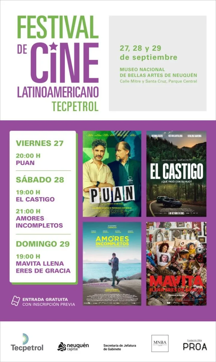Neuquén.- Este año, el Festival de Cine Latinoamericano regresa a Neuquén de la mano de Tecpetrol, reafirmando su compromiso con la cultura de la región. El evento se llevará a cabo los días 27, 28 y 29 de septiembre en el Museo Nacional de Bellas Artes (MNBA) de Neuquén.