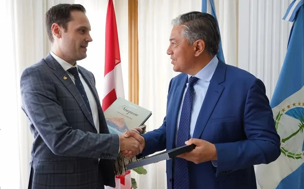 El gobernador de Neuquén, Rolando Figueroa, recibió al ministro de Trabajo, Economía y Comercio del Estado de Alberta, Canadá, Matt Jones, durante su visita a la provincia.