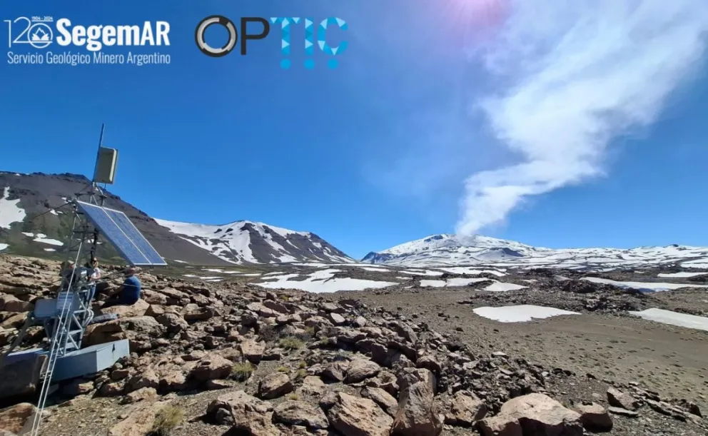 Finalmente, se reemplazó la cámara del nodo satelital en la base del volcán, garantizando una transmisión en tiempo real gracias a la red de telecomunicaciones de OPTIC en Neuquén, que colabora con SEGEMAR en el monitoreo constante de esta actividad volcánica.