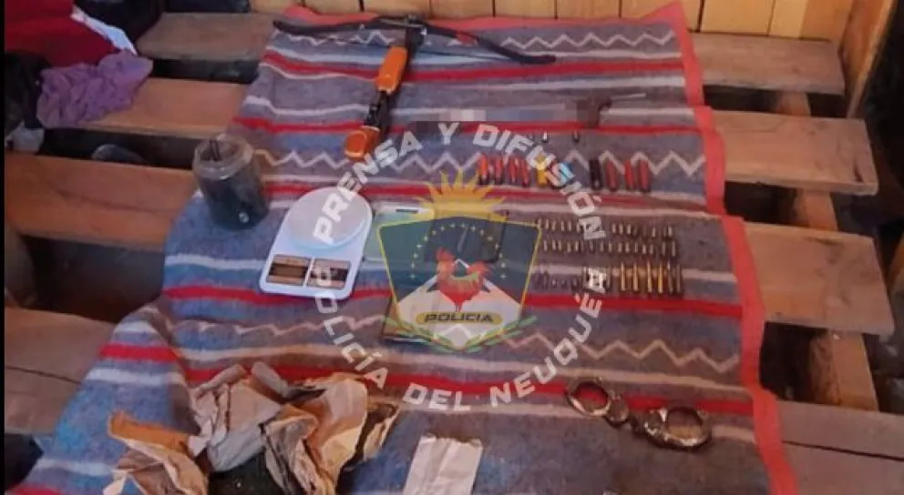 Personal de la Comisaría 29, en conjunto con Gendarmería Nacional, incautó armas de fuego, municiones y más de un kilo de estupefacientes tras operativos en Aluminé.