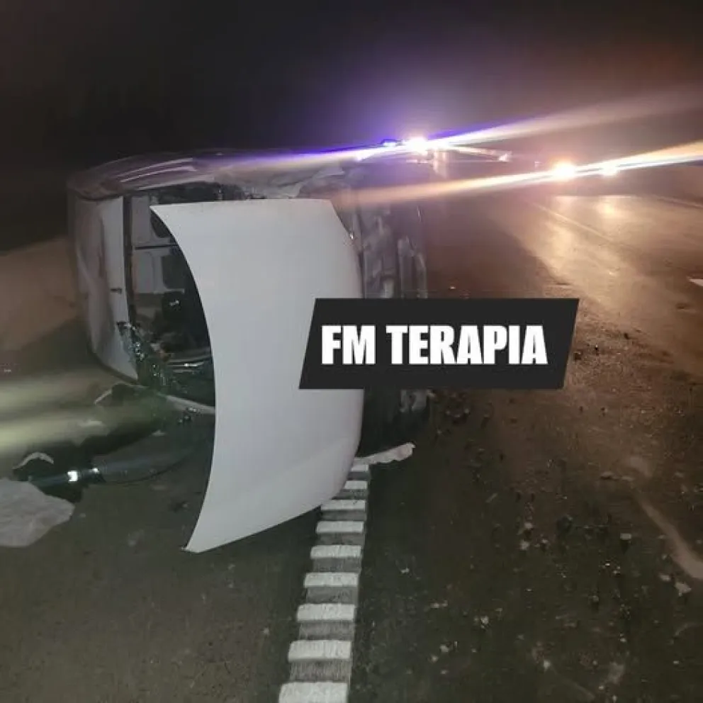 Un Renault Kangoo terminó volcado sobre su lateral derecho tras chocar contra un Fiat Cronos.