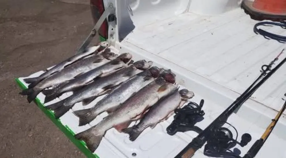Al inspeccionar el vehículo, las autoridades encontraron siete truchas dentro de una conservadora, además de dos cañas de pescar utilizadas en la actividad ilegal.