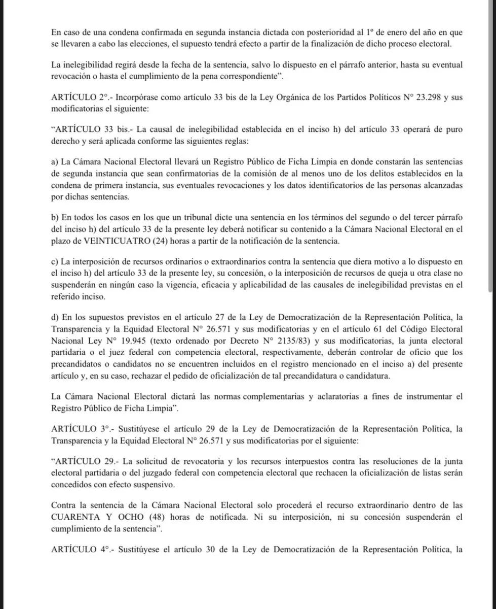 El proyecto de Ley de Ficha Limpia pretende impedir que personas con condenas penales en instancias avanzadas puedan ocupar cargos electivos o de responsabilidad pública. Esta propuesta ha sido tema de discusión en diversos espacios políticos y cuenta con un respaldo creciente entre los sectores que promueven la transparencia y la lucha contra la corrupción.