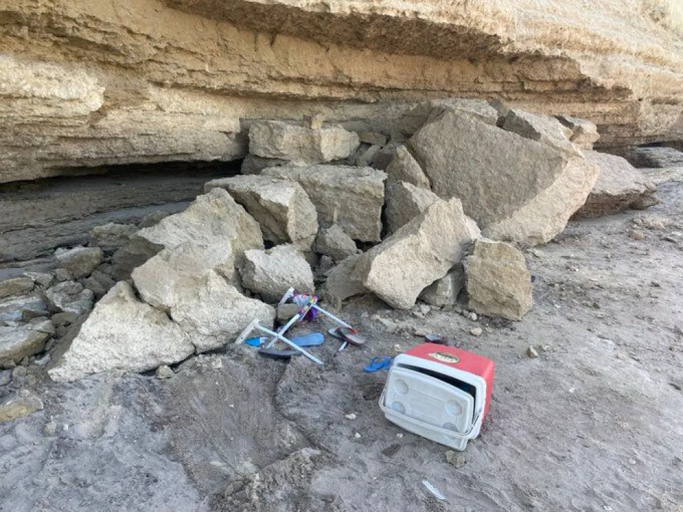 Un desprendimiento de rocas tuvo lugar esta tarde en la zona de la bajada de Los Acantilados, en Las Grutas, causando susto y daños materiales entre los turistas presentes en la playa