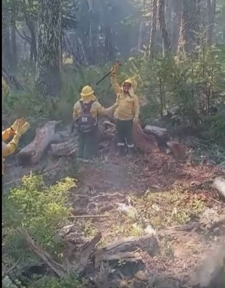 A pesar de la intensidad del incendio y las duras condiciones en las que desarrollan su labor, los brigadistas se tomaron un momento para celebrar a Godoy, demostrando el compañerismo y la unión que los caracteriza en cada intervención.