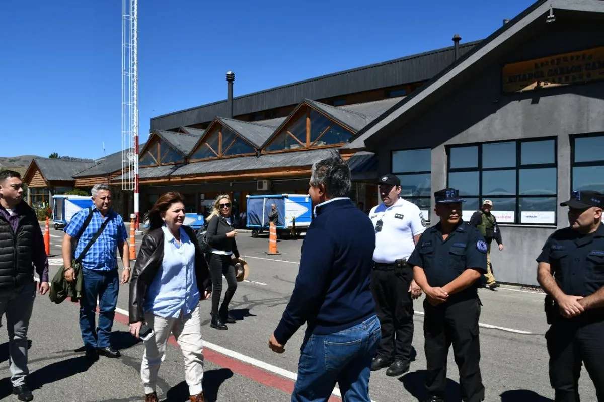 Patricia Bullrich llegó a la provincia de Neuquén y junto con el gobernador Rolando Figueroa recorren la zona del incendio forestal y supervisan las tareas de combate contra los incendios forestales en la zona de Rahue.