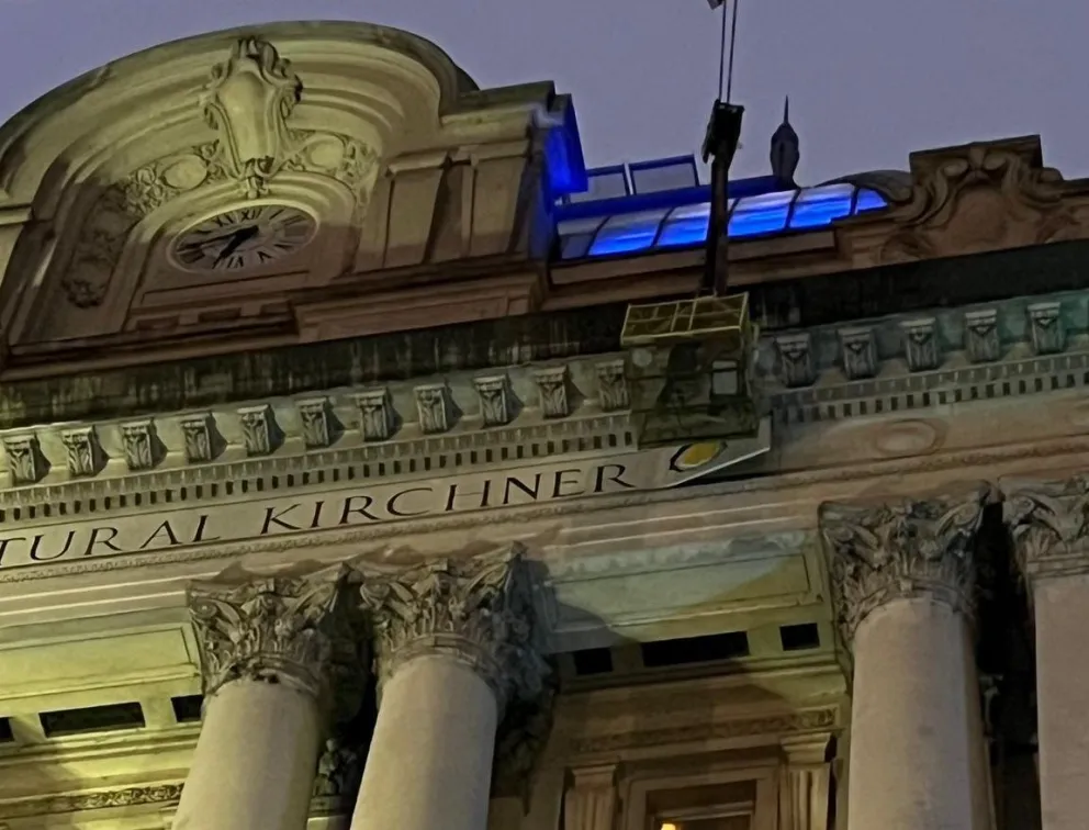 Se eliminaron las letras que identificaban al Centro Cultural Kirchner en la fachada del edificio. El vocero presidencial Manuel Adorni compartió imágenes del proceso.