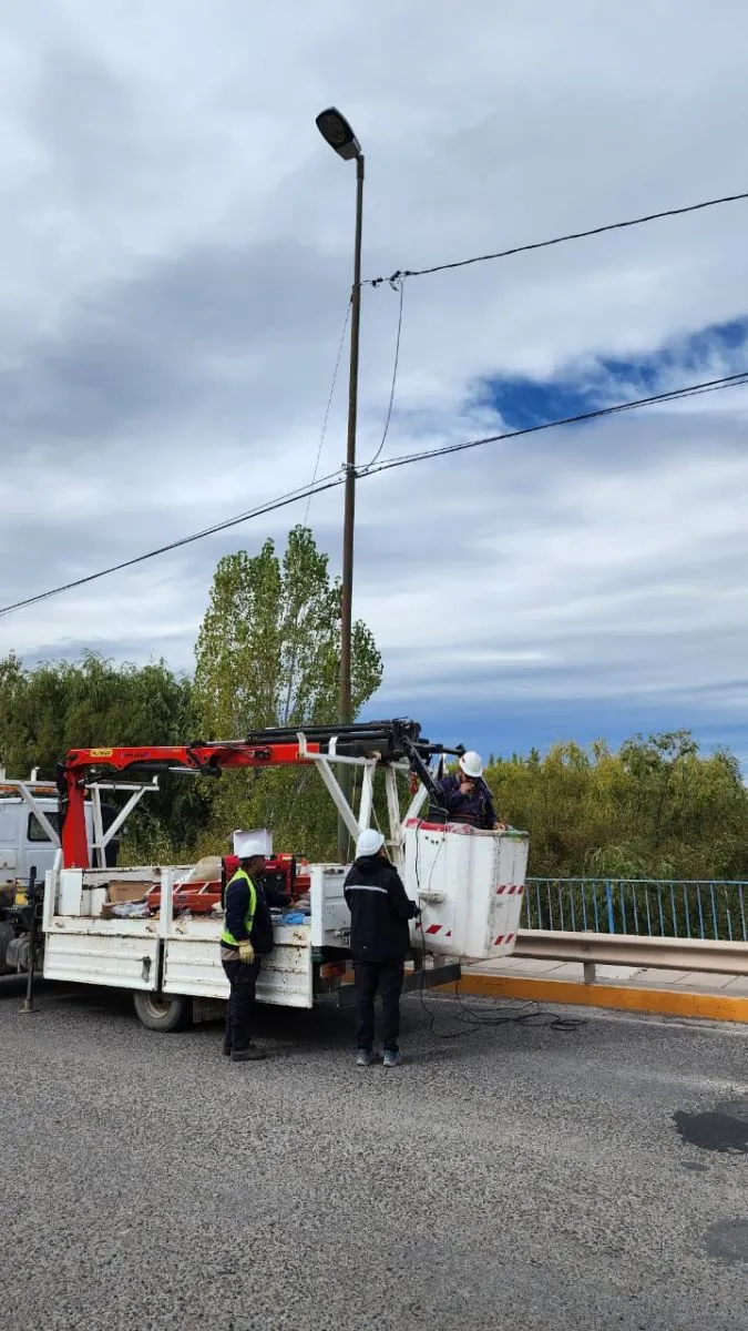 En un esfuerzo coordinado entre el Gobierno provincial neuquino, EPEN y los municipios de Cinco Saltos y Centenario, se llevan adelante trabajos de reemplazo y puesta en valor del alumbrado público vial en el puente que conecta la localidad rionegrina con Centenario, en Neuquén.