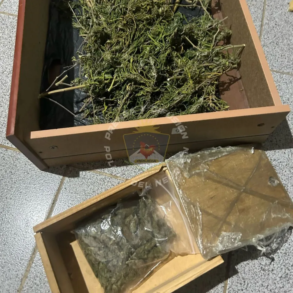 Se incautaron dos plantas, cogollos listos para su distribución y varias plantas más en proceso de secado, lo que abre una nueva línea de investigación por posible microtráfico.