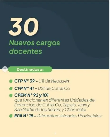 El Consejo Provincial de Educación (CPE) de Neuquén aprobó la creación de cargos docentes para fortalecer el acceso a la educación de personas privadas de su libertad en comisarías y unidades penitenciarias de todo el territorio provincial.