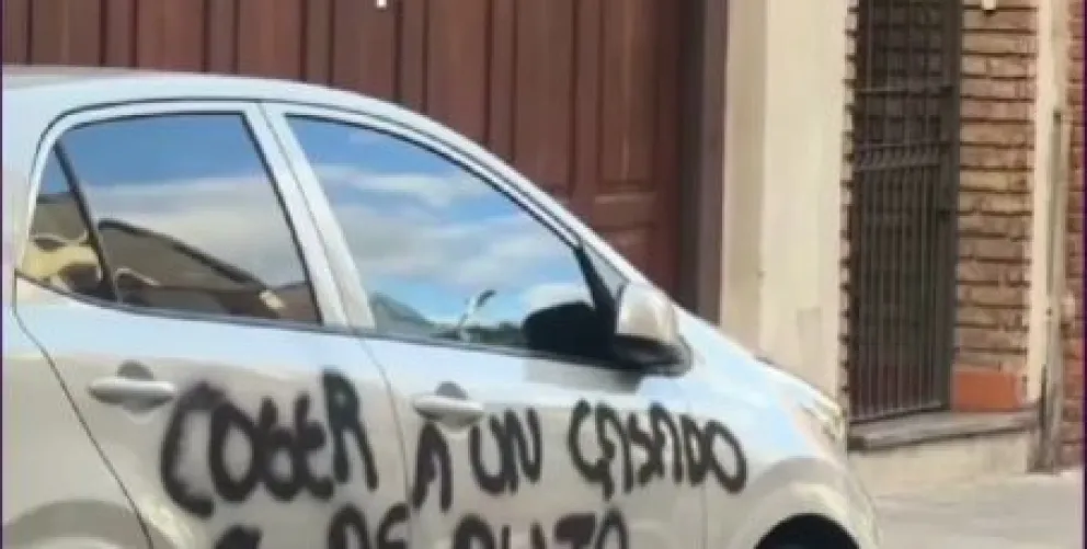 Al día siguiente, su vehículo apareció vandalizado con insultos en el capó, las puertas y el baúl. “Se sabían cosas, se comentaba en el barrio.