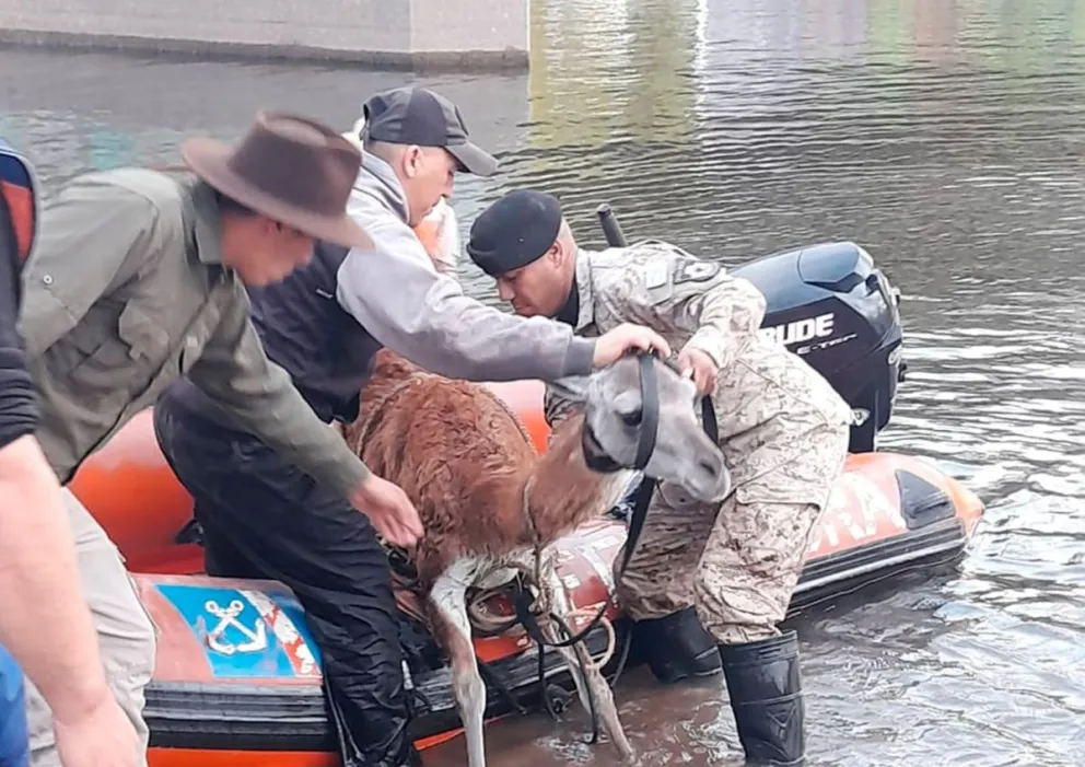 El operativo fue realizado por la Policía Montada, la División Canes y personal de Fauna de la Provincia. El animal estaba en peligro por la fuerte corriente.