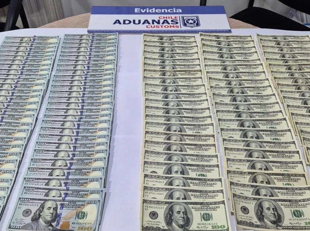 El hombre, identificado como B.A.C.T., fue detectado por una funcionaria de la Dirección Regional de Aduanas de Los Andes, quien notó que una parte de su vestimenta presentaba un volumen inusual. Al ser interrogado, no logró justificar el origen ni la intención del dinero, compuesto por 339 billetes de 100 dólares.