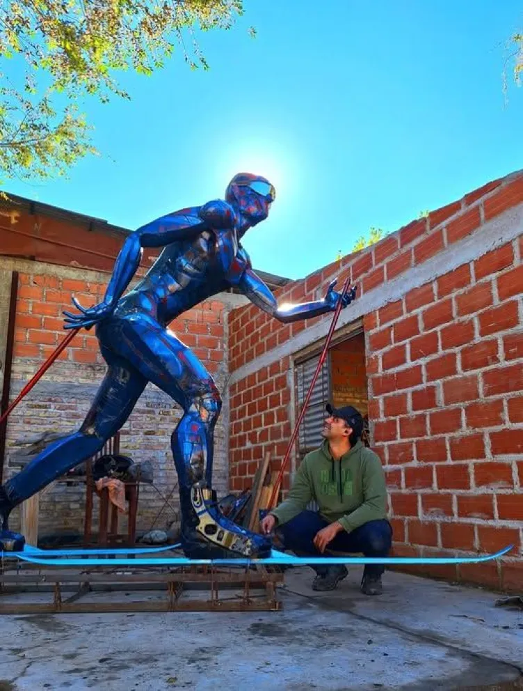 Caviahue suma una nueva escultura: tendrá su “Esquiador de fondo”, obra en metal reciclado