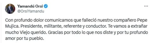 El ex presidente de Uruguay, José “Pepe” Mujica, falleció a los 89 años tras una lucha contra el cáncer de esófago. La noticia fue anunciada por el actual presidente de Uruguay, Yamandú Orsi, quien expresó su dolor y destacó el legado de Mujica, figura histórica de la izquierda uruguaya.