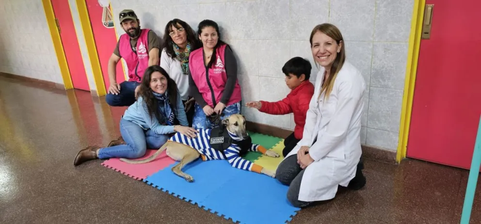 Burlete, un perro rescatado que superó un cáncer gracias a quimioterapia, es uno de los facilitadores terapéuticos que visita el hospital quincenalmente. Su presencia aporta contención y apoyo, especialmente en áreas como pediatría, hospital de día, consultorios y salud mental.