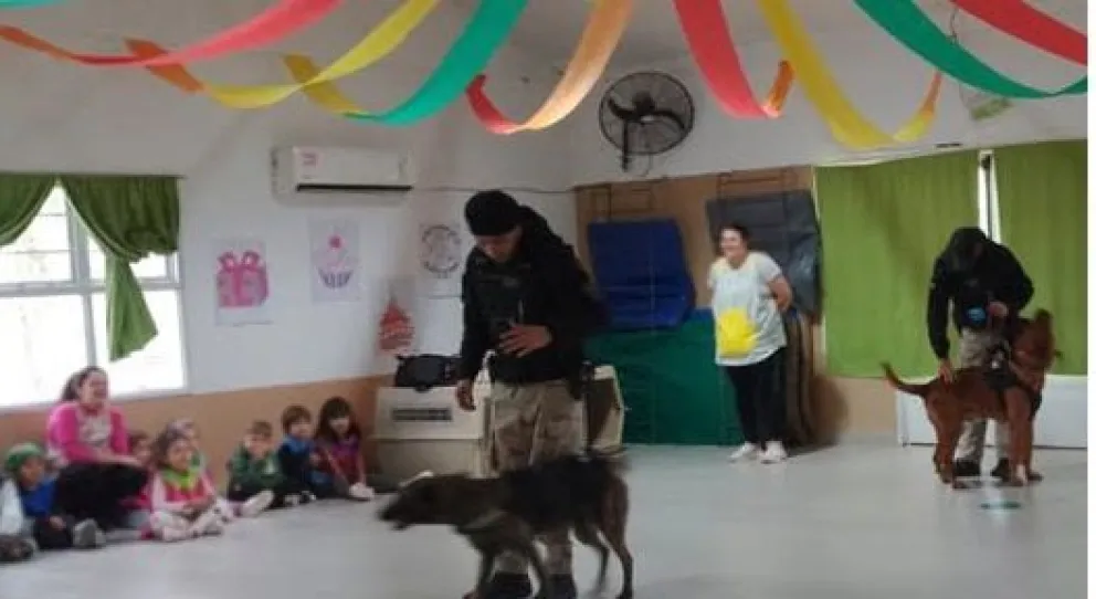 Jornada educativa en Rincón: la Policía visitó el Jardín 47 con una demostración de la División Canes