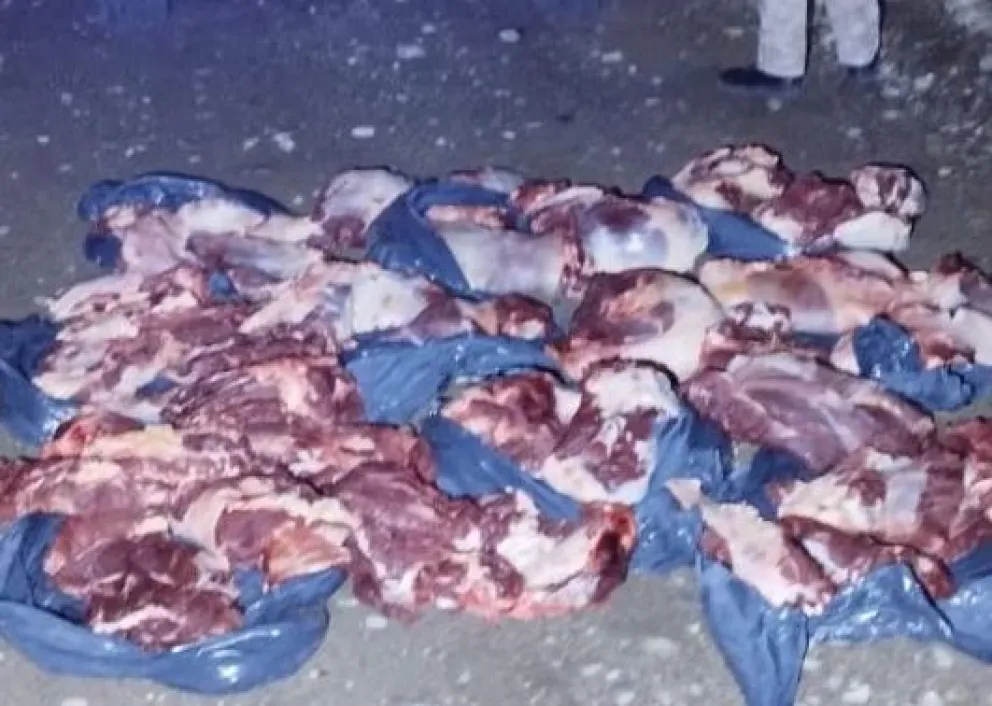 Un operativo de la Brigada Rural de la Zona Andina permitió secuestrar más de 200 kilos de carne bovina que eran transportados de forma irregular en la caja de una camioneta, junto a bidones con combustible, una combinación peligrosa y fuera de toda normativa sanitaria.