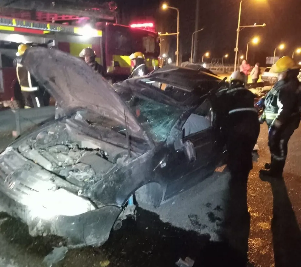 Volcó un auto en el ex peaje de Centenario y bomberos rescataron a un joven atrapado