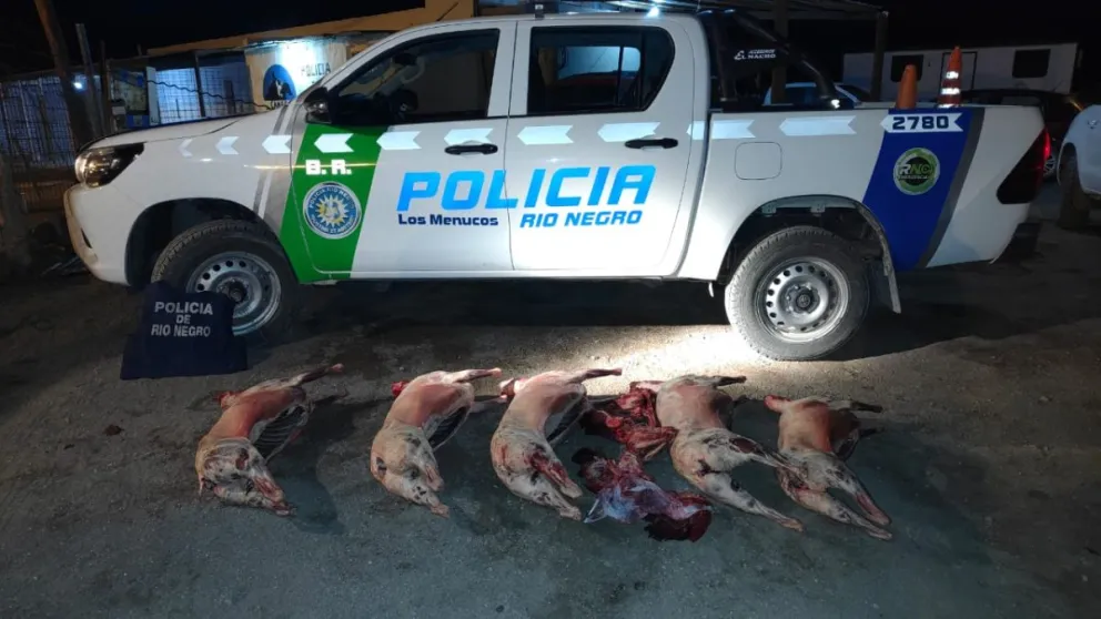 El procedimiento fue llevado a cabo por personal policial de la Unidad Regional VI de Los Menucos, quienes al inspeccionar el rodado que circulaba en dirección Oeste-Este, constataron que en la caja se trasladaban cinco ovinos faenados, envueltos en bolsas y frazadas, sin cumplir con las condiciones sanitarias requeridas para el transporte de productos cárnicos.