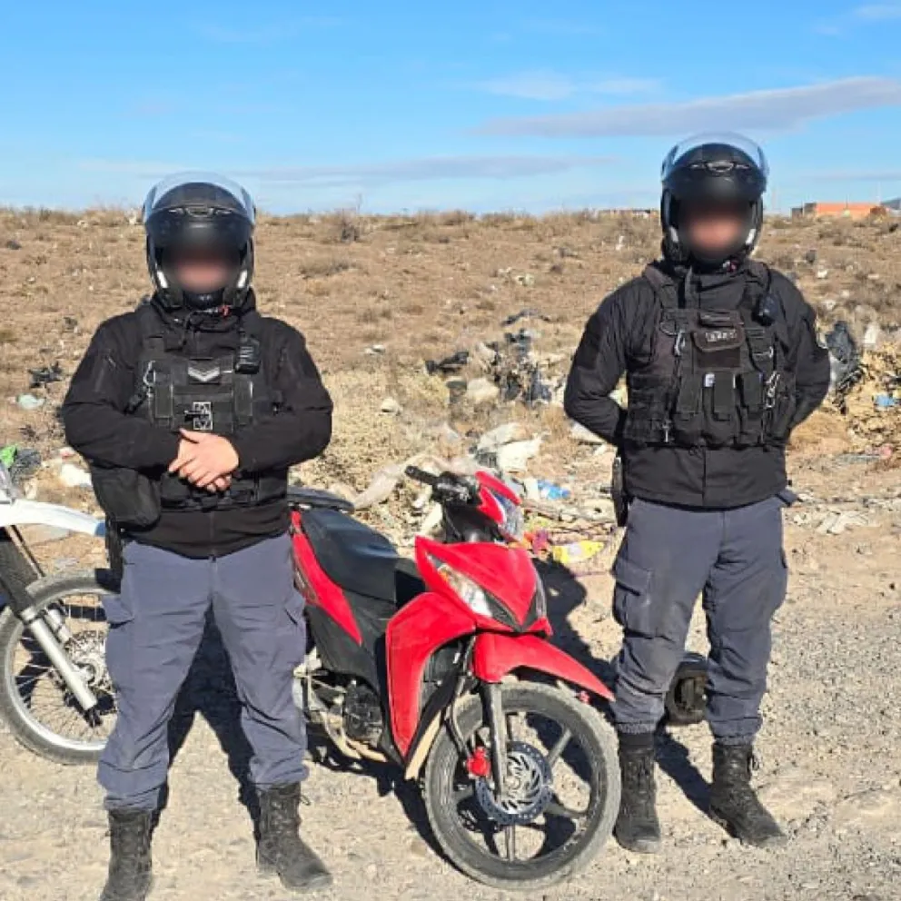 Minutos después, a las 14:15, los motoristas lograron ubicar a los sospechosos en una zona de ripio, donde el conductor perdió el control del rodado y cayó. Uno de los sujetos intentó huir, pero fue reducido de inmediato por el personal policial.
