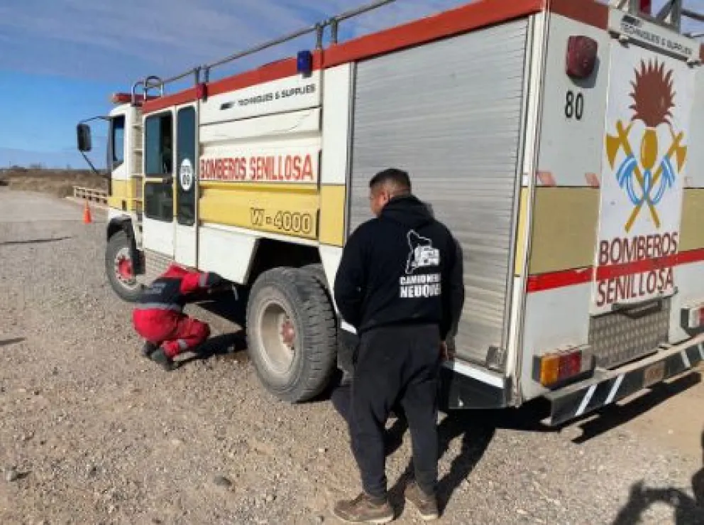 Un móvil de Bomberos de Senillosa sufrió un desperfecto y dos vecinos lo repararon