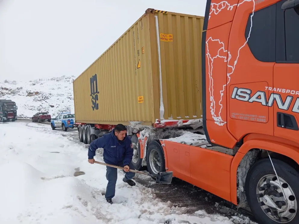 En medio del fuerte temporal de nieve que afecta a gran parte de la provincia de Neuquén, efectivos del Destacamento Paso Aguerre, dependiente de la Comisaría 9° de Picún Leufú, asistieron a un camionero chileno que se encontraba varado por las malas condiciones climáticas.