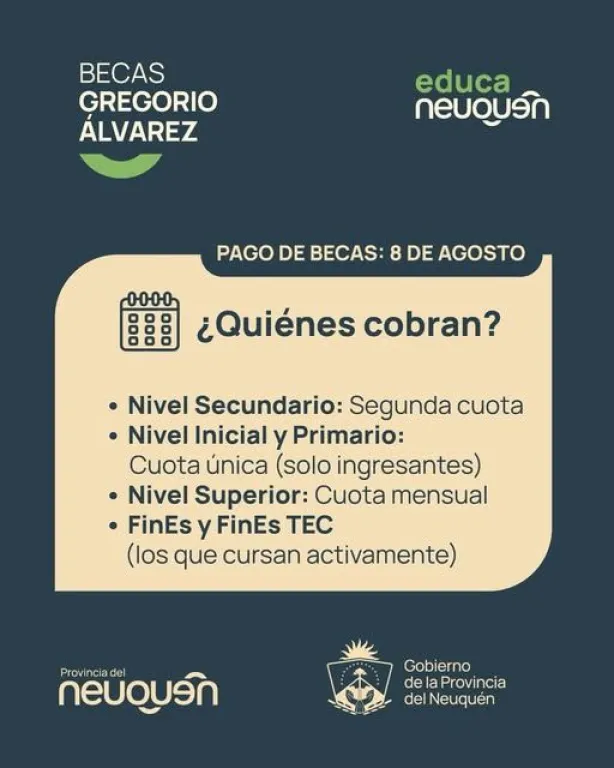 Desde este viernes 8 de agosto, el Gobierno provincial abonará los beneficios a estudiantes de nivel Inicial, Primario, Secundario, Superior y programas FinEs y FinEs Tec.