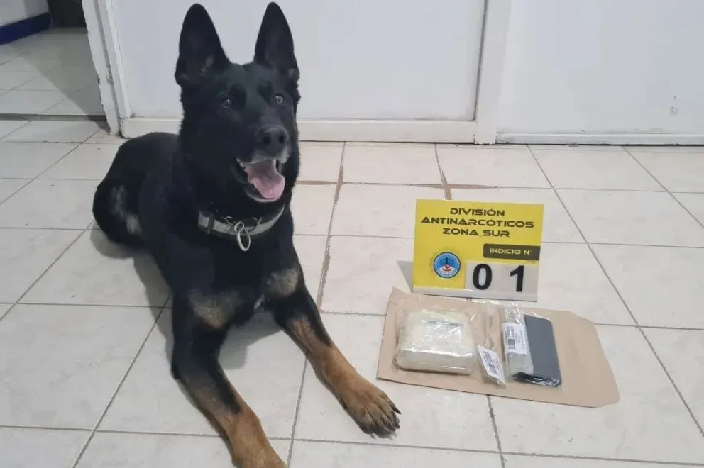 El procedimiento tuvo lugar el miércoles por la tarde, a la altura del kilómetro 1.518, con apoyo del puesto de tránsito Collón Cura. El can marcó a un pasajero de un colectivo de larga distancia, quien llevaba la droga oculta entre sus prendas.