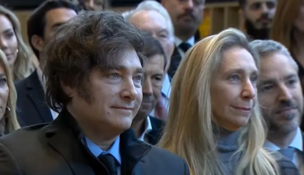 El presidente Javier Milei encabezó este lunes un acto en la inauguración del nuevo edificio de Corporación América, donde estuvo acompañado por la secretaria general de la Presidencia, Karina Milei.